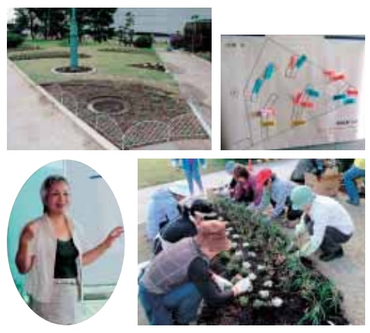 このような状況の中で、年数回の植え替えを伴う一年草の花壇ではなく「持続型花壇の造成について」をテーマに、植栽後数年間は楽しめ、愛着がわく宿根草や樹木を主体とした費用と手間をかけない、ローコスト・ローメンテナンスの花壇づくり、これからの花壇をどうしていくのかなどを話し合い、実習を行いました。